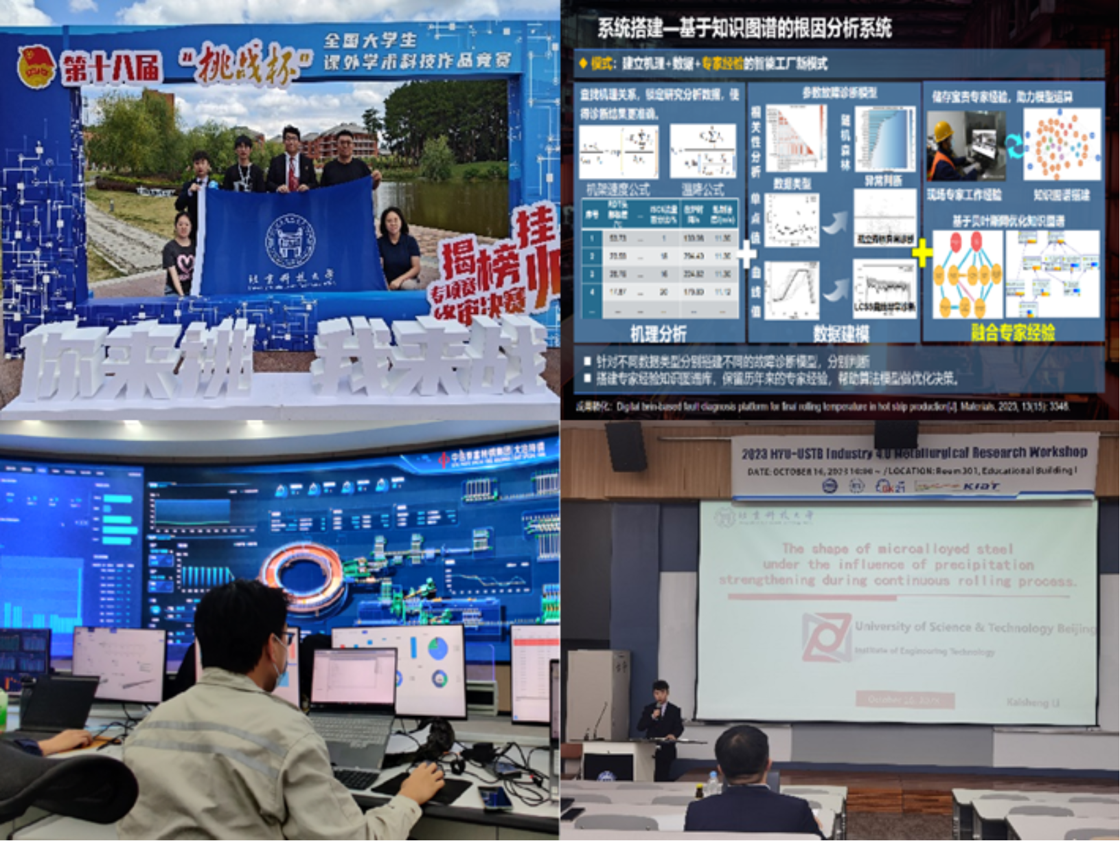 團隊開發了鋼鐵交互服務系統,通過數據字典、知識圖譜等功能,對鋼鐵生產全過程中的全部數據進行信息整合和數據分析;實現了全流程、全時空的數據搜索;團隊還研發了能源管控系統;實現了能源動態實時監測、爐溫控制、能耗預測以及能耗分析,實現生產能耗的精準分析對比,對能耗水平進行評估,對能消異常原因進行追溯,為節能優化的閉環管理提供支撐和依據;同時也研發了質量管控系統,實現了生產過程質量評價、質量分析、質量預測等功能,成功降低廢鋼率;最后,通過生產全流程數字孿生仿真系統實現了生產過程的動態實時映射,將無形的數據可視化展示出來。