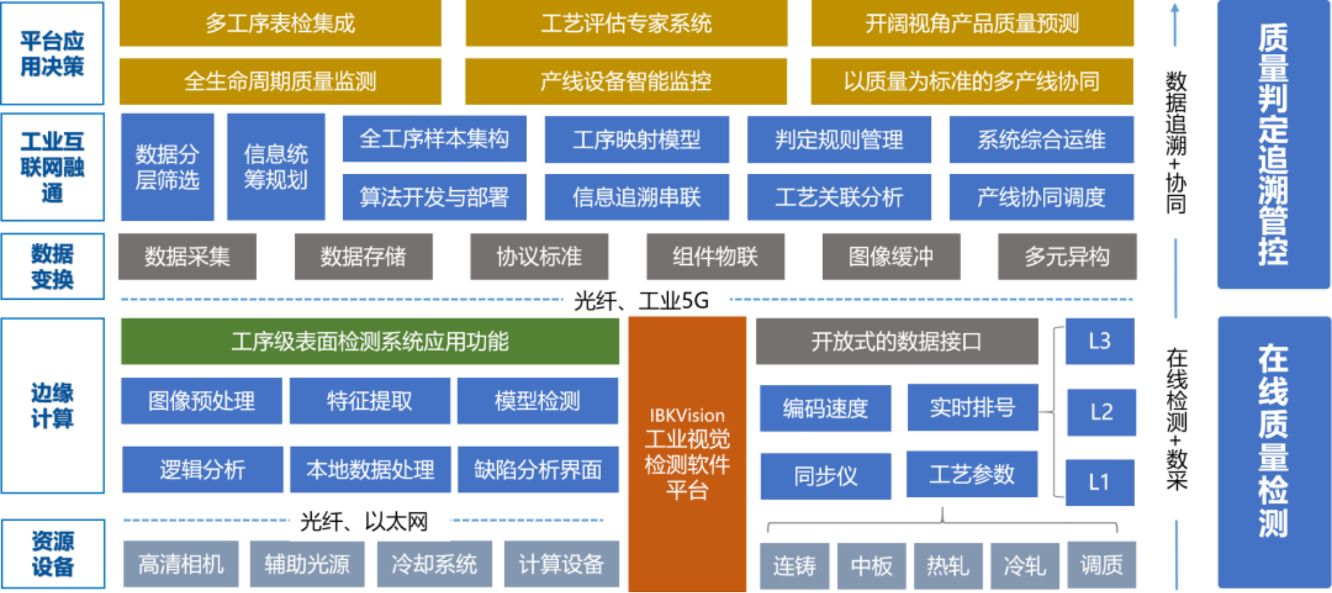北科工研智能檢測團隊結合多年的AI視覺檢測應用,通過工業互聯網構建質量檢測+質量協同一體的平臺架構,打造冶金流程生產線質量檢測+質量判定及追溯應用新模式。