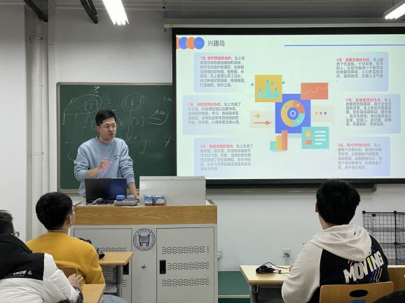 輔導員周泓宇借助“興趣島”小游戲,帶領(lǐng)參會同學們深入講解了個人性格特征與就業(yè)選擇的關(guān)系。引導同學們認真思考自己究竟想要什么,適合什么,需要從哪些方面發(fā)展提升。
